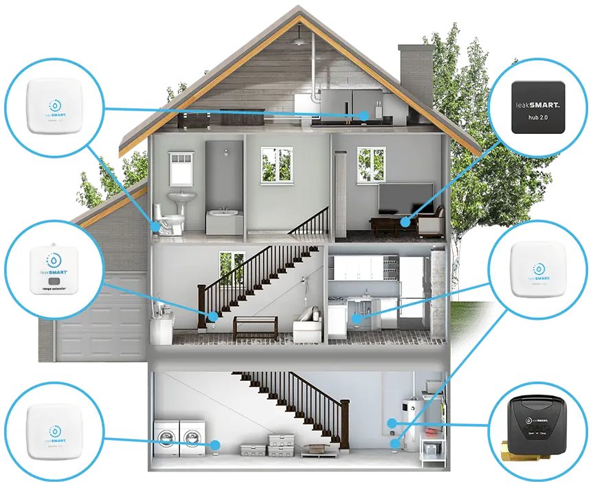 Place LeakSmart Sensors around appliances, water heaters, bathrooms, and HVAC units for non-stop leak and flood protection in your home. At the first sign of unwanted water, LeakSmart shuts off your water supply in 5 seconds or less.